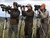 mit Ferngläsern und Spektiven nach durchziehenden Greifvögeln